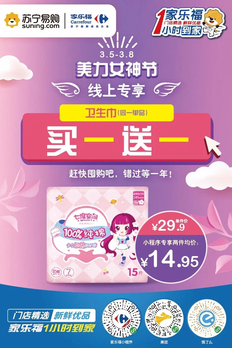 當然,家樂福也一直在線,給你們送上儀式感節日福利。3月5日至3月8日,家樂福美“力”女神節熱辣來襲。家樂福小程序、蘇寧易購APP、蘇寧小店APP、美團外賣和餓么了五大線上平臺“火力全開”,讓你的美麗一直營業不打烊。