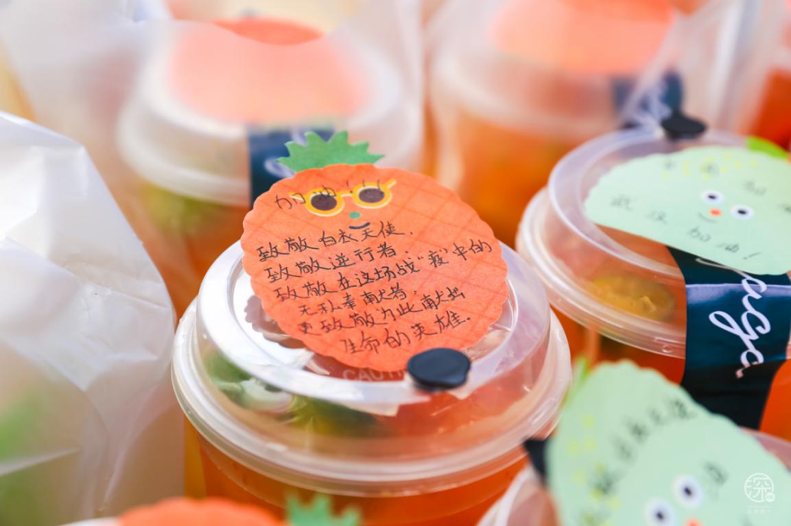 當然除了熱心市民,來獻愛心的還有卓悅INTOWN購物中心內的商戶:瑞幸咖啡、麥當勞、太平洋咖啡、CoCo都可、湊湊、gaga鮮語、HUN混果汁、享甜、Bangs Burger燕遇、辣可可現炒黃牛肉、旬野菜在知道這次活動后,紛紛主動提供食物或飲品,給疫情期間始終奮斗在一線的服務人員們,他們值得我們好好愛著。