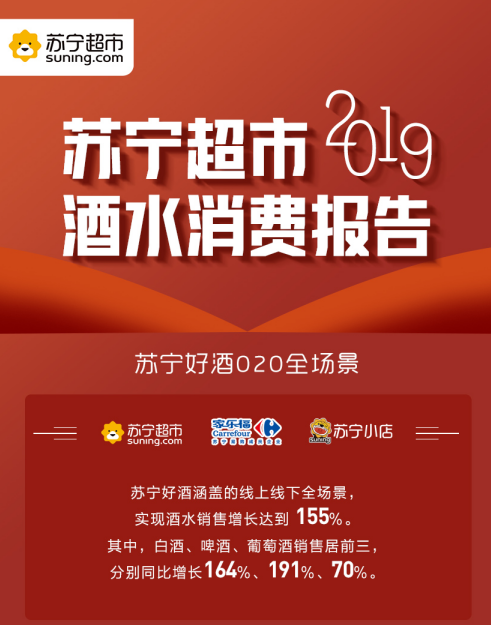 深圳新聞網(wǎng)2020年3月20日訊 昨日,蘇寧超市發(fā)布2019年度酒水消費(fèi)報(bào)告。數(shù)據(jù)顯示,2019年,蘇寧好酒全渠道銷(xiāo)售同比增長(zhǎng)155%。其中,白酒、啤酒、葡萄酒銷(xiāo)售分別同比增長(zhǎng)164%、191%、70%。縱觀整年,家樂(lè)福、飛天茅臺(tái)酒、全場(chǎng)景等成2019年蘇寧酒水關(guān)鍵詞,這也進(jìn)一步凸顯了蘇寧超市酒水生態(tài)圈建設(shè)的卓越成效。