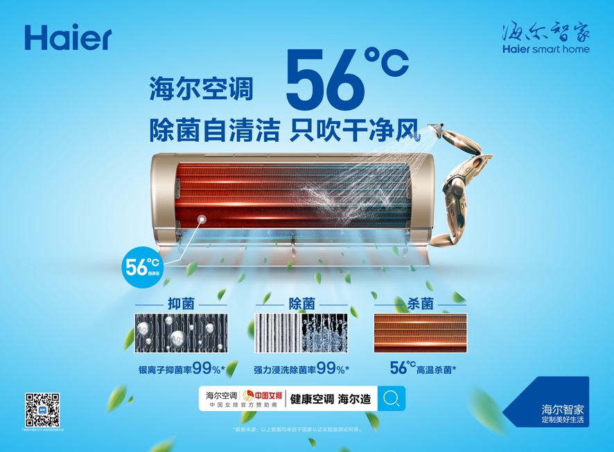 不僅如此,針對空調臟、清洗難的問題,海爾還升級了56度C除菌自清潔空調。當空調開啟自清潔后,蒸發器溫度可達56℃以上,達到除菌除塵的效果。