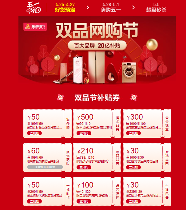 為迎接“雙品網購節”的爆發,蘇寧以超20億的消費補貼刺激消費。補貼券怎么領?用戶可以在蘇寧易購 APP首頁進入“雙品網購節”主會場,也可以關鍵字“雙品網購節”,或者選擇帶有雙品網購節標志的產品進入會場,在會場頁面領取補貼券。