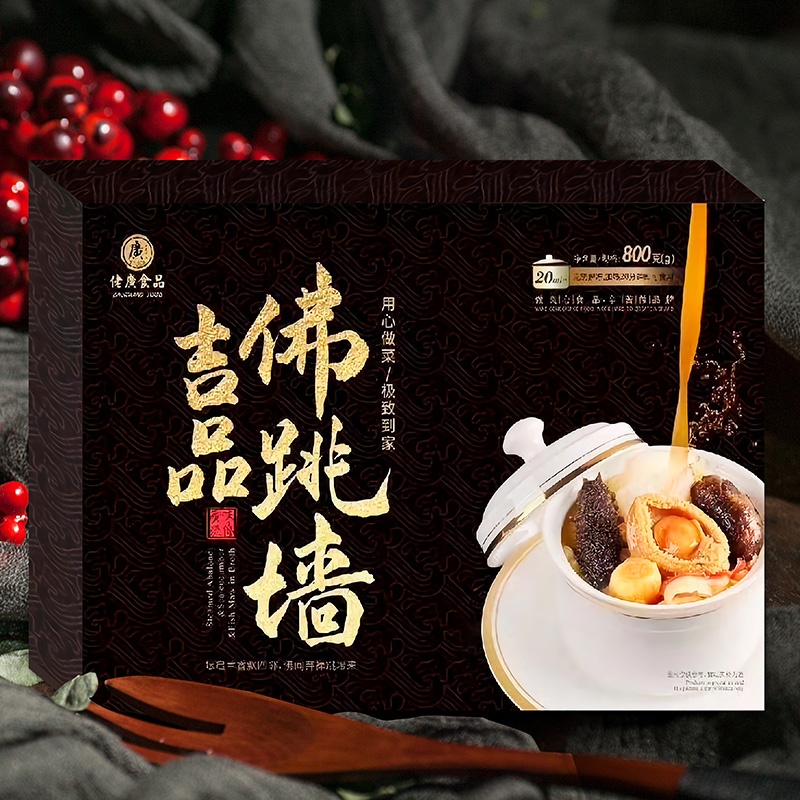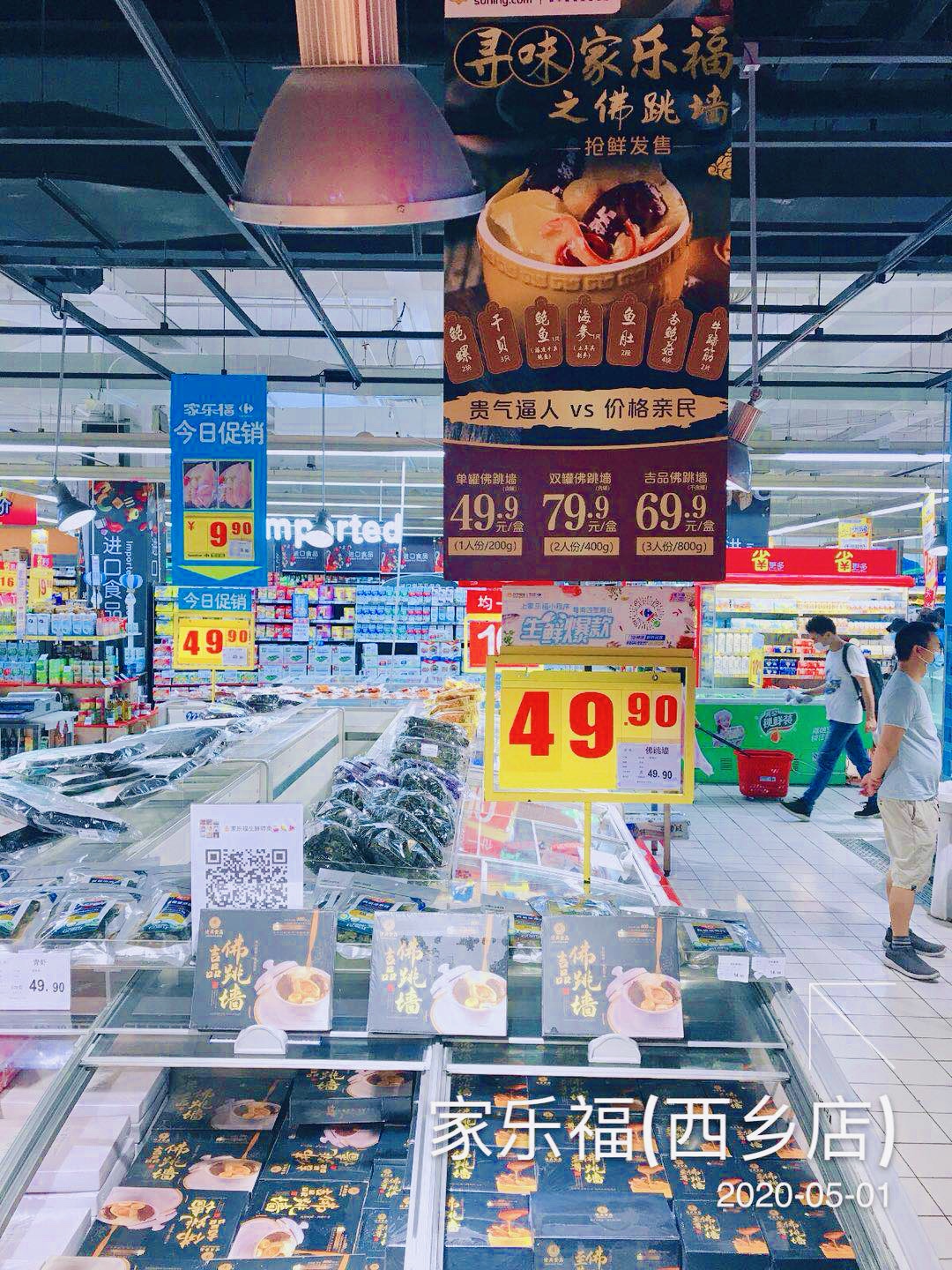家樂(lè)福此番以“佛跳墻”打響頭炮。古人曰:“壇啟葷香飄四鄰,佛聞棄禪跳墻來(lái)”。佛跳墻作為滿漢全席的主菜之一,匯聚鮑魚(yú)、海參、魚(yú)肚、鮑螺、干貝、牛蹄筋、杏鮑菇、素翅等數(shù)十種珍貴食材煨于一蠱,吃起來(lái)軟嫩柔潤(rùn),湯汁濃郁鮮香。