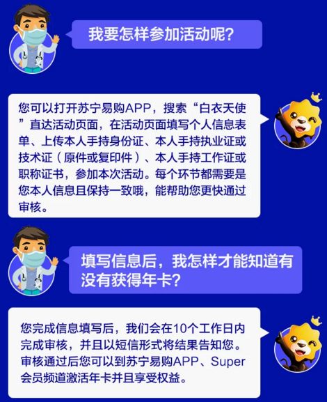 為表達對醫護工作者的敬意,蘇寧對全國醫護人員開放SUPER會員免費申領活動。