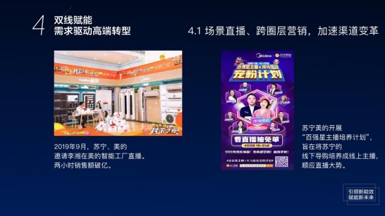 值得一提的是,疫情期間帶火的直播模式將在家電消費中發揮越來越重要的作用。蘇寧也將持續以直播帶貨、微信秒殺、社群推廣等方式,通過線上社交電商+線下社群營銷,挖掘新興渠道。與此同時,基于用戶需求,從大規模制造向大規模 C2M定制轉變,從粗放式產品運營到精準化操作轉變,將成為蘇寧空調的增長新支點。