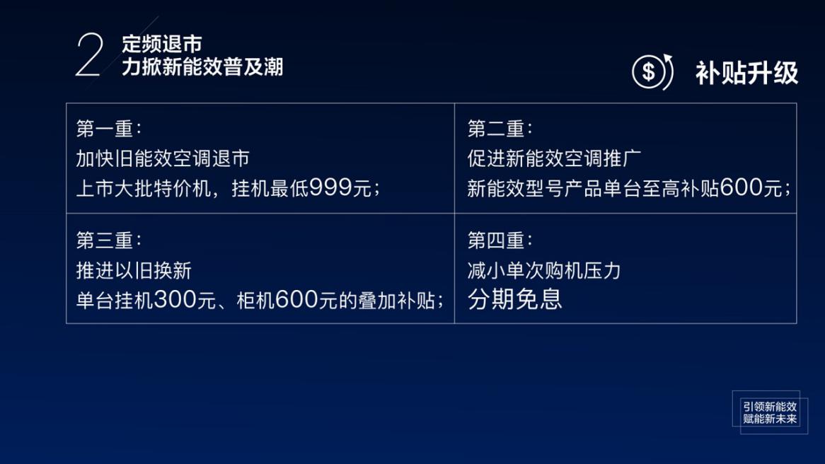 同時,“新一級能效聯盟”還將持續開展“空調節能風暴”等綠色消費讓利活動。該活動涵蓋四重補貼,分別是老能效清倉、新能效補貼、以舊換新及分期免息,多管齊下加速新舊能效產品的切換、擴大綠色消費規模。