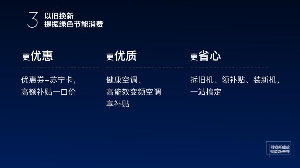 實現能效、健康升級,以舊換新是“剛需”。2020年,蘇寧空調重磅加碼以舊換新,舊機估值一口價,換新時購買高能效變頻產品與健康空調可享高額補貼,同時為解決流程繁瑣問題,將持續優化拆舊機、領補貼、裝新機的一站式服務,真正實現更優惠、更優質、更省心。