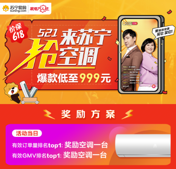 此外,此次搶空調期間,蘇寧還將以“萬人帶貨王”的帶單獎勵活動,依托蘇寧推客、蘇小團等社交平臺,邀請廣大網友為空調帶貨。多款熱銷空調均設有高傭金獎勵,實際帶單數量最多和帶單數額最高的“帶貨王”均可獲得1臺空調作為獎勵。