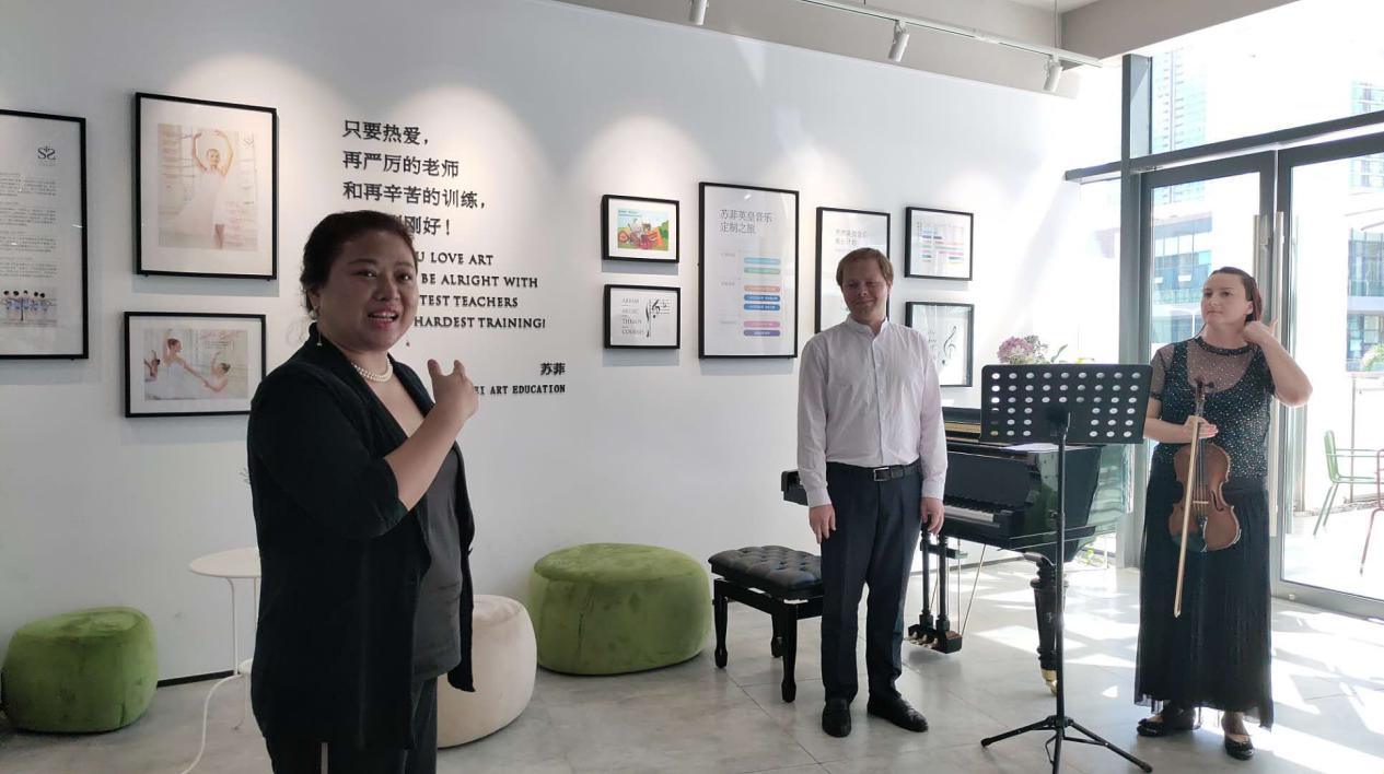 在欣賞完來自白俄羅斯的鋼琴老師和小提琴老師帶來《肖邦練習(xí)曲1C大調(diào)》以及《愛之憂傷》、《美麗的羅斯瑪琳》后,可愛的孩子們帶來了一堂“芭蕾舞”教學(xué)示范課,一群僅4、5歲的孩子們?cè)诎爬傥枥蠋煹膸ьI(lǐng)下,感受芭蕾舞的韻律,學(xué)習(xí)芭蕾舞的基本坐姿以及芭蕾舞的初級(jí)分解動(dòng)作。課程中,老師更注重讓孩子理解芭蕾,了解芭蕾禮儀,也運(yùn)用可愛的教具讓孩子們不分散注意力,全神貫注參與到芭蕾舞學(xué)習(xí)當(dāng)中來。 據(jù)了解,蘇菲教育將在中國(guó)很小眾的英皇課程普及化,讓孩子在家門口就可以接觸到國(guó)際通行與高度認(rèn)可的芭蕾舞和鋼琴課程。作為深圳市英國(guó)皇家芭蕾舞和鋼琴的指定考點(diǎn),學(xué)生獲得的證書含金量很高,不但可以在申請(qǐng)國(guó)外大學(xué)時(shí)增加入學(xué)學(xué)分,還可以同步享受國(guó)外大學(xué)獎(jiǎng)學(xué)金制度。與此同時(shí),蘇菲教育在整個(gè)教育過程始終灌輸“雙語教學(xué)”理念,讓外籍教師與雙語教師用純英文或者雙語授課,為孩子們的“全球化視野”打下基礎(chǔ)。