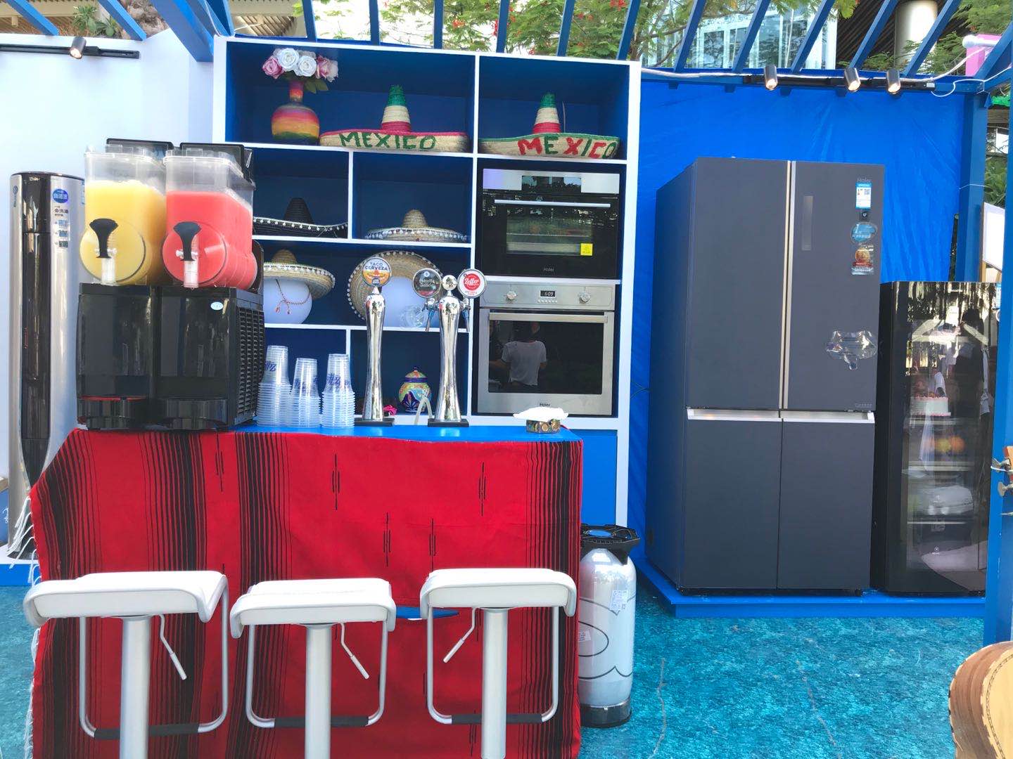 來到水吧,你可以看見冰箱、冰吧裝滿琳瑯滿目的酒水,來到現場的人們可以盲選3類基礎酒,自己或請調酒師為你調配一杯今天的lucky drink。冰箱里填充了滿滿的食材、水果,想吃各類冰沙都可以現場制作體驗。來到廚電區域可以品嘗由海爾烤箱現場制作的小餅干,焦香酥脆讓你流連忘返。