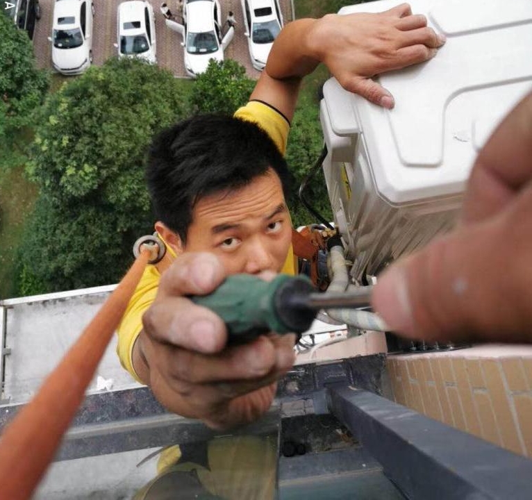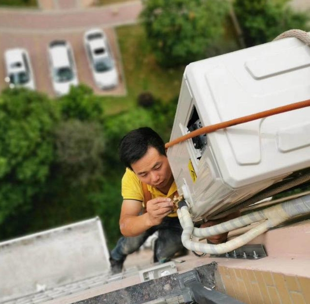 只靠一根繩,30米高空裝空調