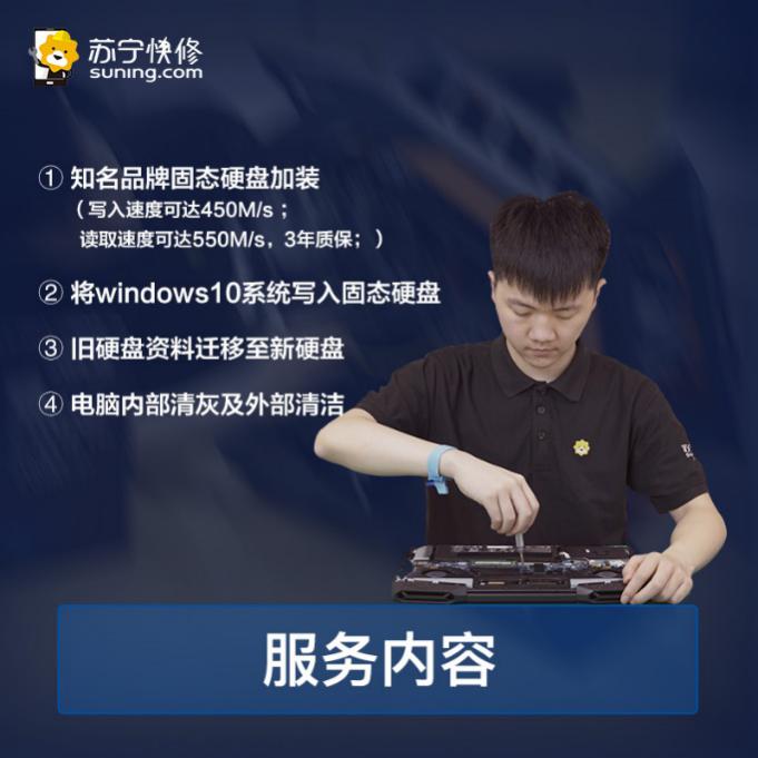 此外,蘇寧快修工程師在加裝、更換固態硬盤后,還會替消費者重新安裝 Windows10系統,將舊硬盤資料遷移至新硬盤,并對電腦內外進行全面清灰清潔,保障低溫、超靜音運行,有效延長電腦電池使用時間。