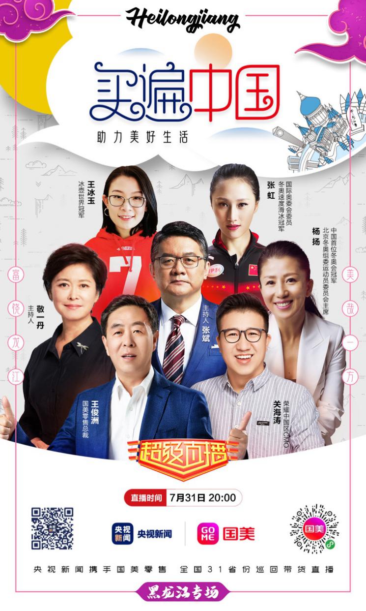 7月31日,“買遍中國·助力美好生活——央視新聞&國美零售全國31省份巡回帶貨直播”第二站聚焦黑龍江,回眸東北這片熱土。本次直播延續了國美一貫的開放與親民風格。央視體育主播張斌將與三位世界冠軍——中國首位冬奧會冠軍楊揚、冬奧速滑冠軍張虹、冰壺世界冠軍王冰玉及央視主持人敬一丹同臺帶貨,除了推薦國美熱銷的數十款家電及消費電子產品,更帶來了眾多黑龍江特色產品。