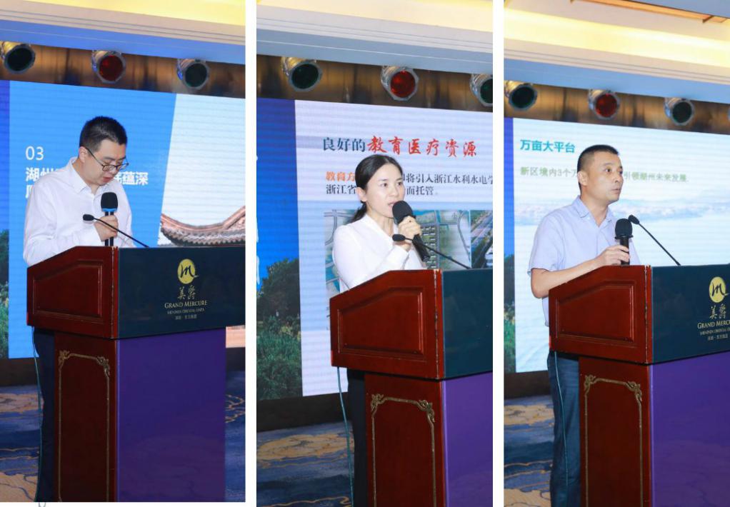 吳興區政府辦公室副主任朱江政、南潯區副區長費學梅以及南太湖新區管委會副主任王國良分別從不同角度對三區進行了強力推介,吳興區的創新、南潯區的秀美、南太湖新區的活力,讓深圳的企業家更深刻地認識了湖州,領略了湖州不同區域的發展魅力和優越的投資環境。