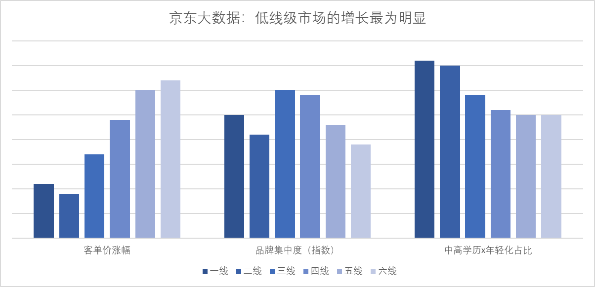 京東大數(shù)據(jù)從“客單價漲幅、品牌集中度、高學歷及年輕人占比”等指標對1 -6線消費者的月餅購買數(shù)據(jù)進行分析發(fā)現(xiàn),京東月餅消費者大學及以上學歷占比70%;90后用戶占比65%;中高消費水平用戶占比98%;此外需要注意到中低線市場“小鎮(zhèn)”中等收入人群的崛起,這些年輕化、高學歷、懂品味的人群正在引導整體消費市場從追求性價比到品牌、品味等更高追求的轉(zhuǎn)變。