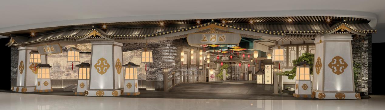 上河坊名稱源自于北宋著名畫家張擇端繪制的不朽杰作《清明上河圖》,這幅用高度現(xiàn)實(shí)主義手法創(chuàng)作的長卷風(fēng)俗畫,通過對(duì)市俗生活的細(xì)致描寫,生動(dòng)地再現(xiàn)了北宋汴京升平時(shí)期的繁榮景象。整部作品長而不冗,繁而不亂,嚴(yán)密緊湊,有如一氣呵成,畫卷中大至原野、浩河、商廊,小至舟車人物、攤鋪、擺設(shè)、市招文字皆統(tǒng)組一起,零售門店與酒肆茶樓交相輝映,真實(shí)自然,令人有如臨其境之感。而位于寶安大仟里L(fēng)3層的上河坊主題街區(qū),還將融合古代建筑繁華街景與現(xiàn)代投影科技的結(jié)合,力求還原最真實(shí)的《清明上河圖》中汴河兩岸繁華的鬧市風(fēng)景,營造“古街風(fēng)貌”的場(chǎng)景,融合“美食文化”與“非遺體驗(yàn)”的核心內(nèi)容,為消費(fèi)者呈現(xiàn)前所未有的購物體驗(yàn)。