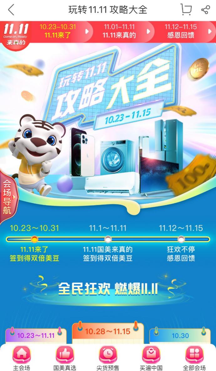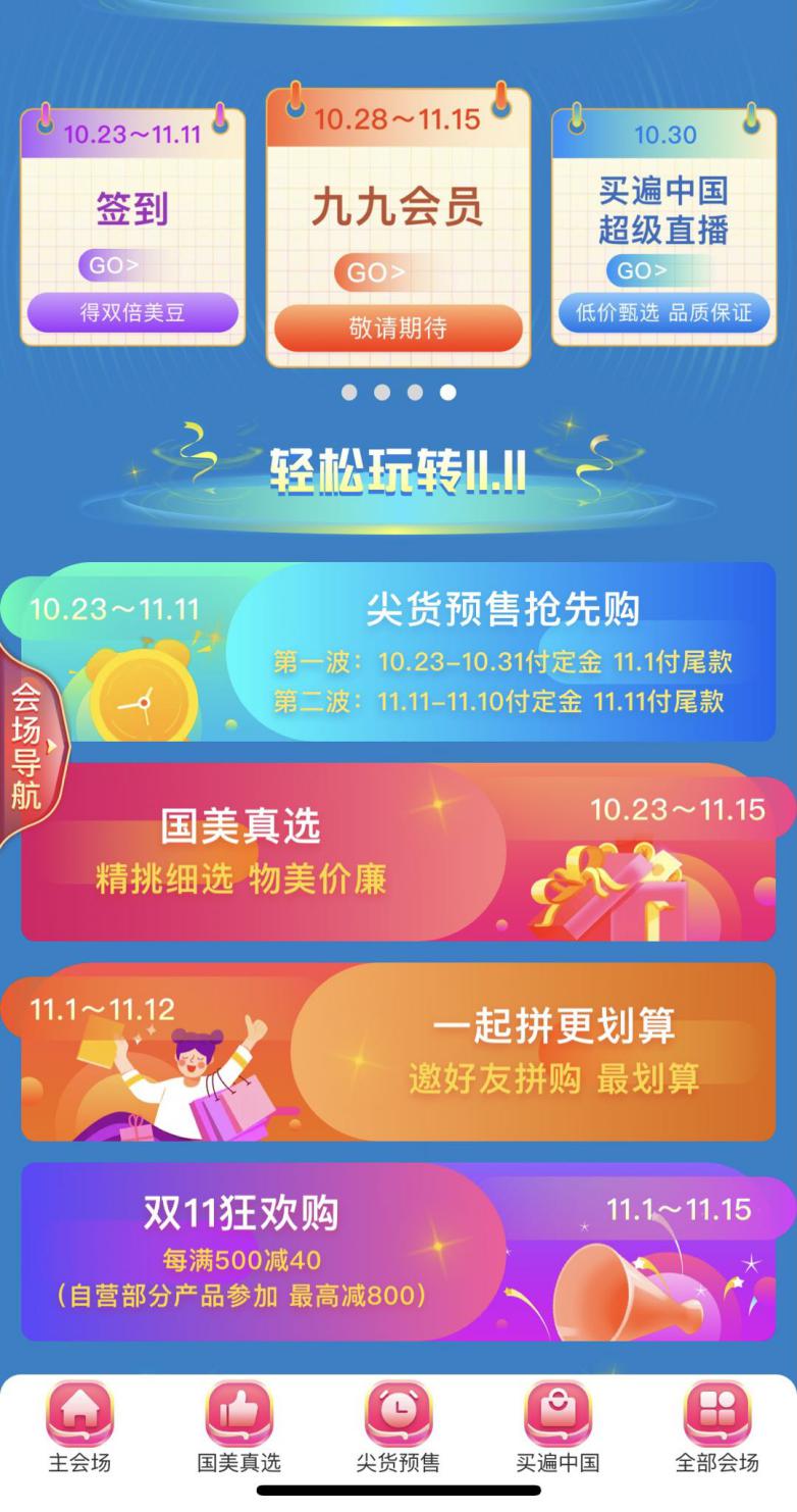 10月28日至11月25日,國美九九會員上線,只需九塊九,羊毛就能薅到手;10月30日,“買遍中國”直播杭州站開播,西湖美食便宜還好吃;11月1日-11月3日大促高峰啟動,各種紅包雨抽獎嗨不停;11月4日至11月6日,萬人直播,空前視覺盛宴奉上;11月7日至11月10日,買遍歐洲直播活動,全球好物任你挑;后續還有返場福利等你來拿!