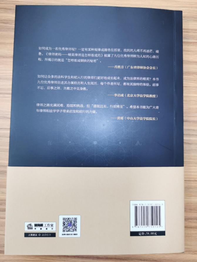 肖勝方會(huì)長(zhǎng)在“推薦語(yǔ)”中指出:“如何成為一名優(yōu)秀律師呢?一定有某種規(guī)律或路徑在那里,找到的人將不再迷茫、疲憊。《律師密碼——精英律師是怎樣練成的》披露了九位優(yōu)秀律師鮮為人知的心路歷程,所揭示的就是‘怎樣煉成鋼鐵的秘密’。” (吳艷 )