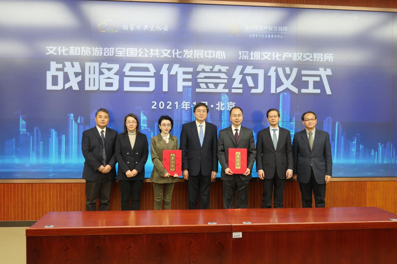 見圳客戶端·深圳新聞網2021年1月13日訊 今日,文化和旅游部全國公共文化發展中心(以下簡稱“發展中心”)與深圳文化產權交易所(以下簡稱“深圳文交所”)在北京簽署戰略合作協議。文化和旅游部黨組成員、副部長張旭出席并見證簽約儀式。發展中心主任白雪華主持簽約儀式。發展中心副主任尹壽松與深圳文交所總經理助理、深圳市文化金融服務中心常務副主任王曉銳簽署戰略合作協議。文化和旅游部公共服務司副司長朱渤、國際交流與合作局副局長鄭浩,以及簽約單位相關人員參加簽約儀式。