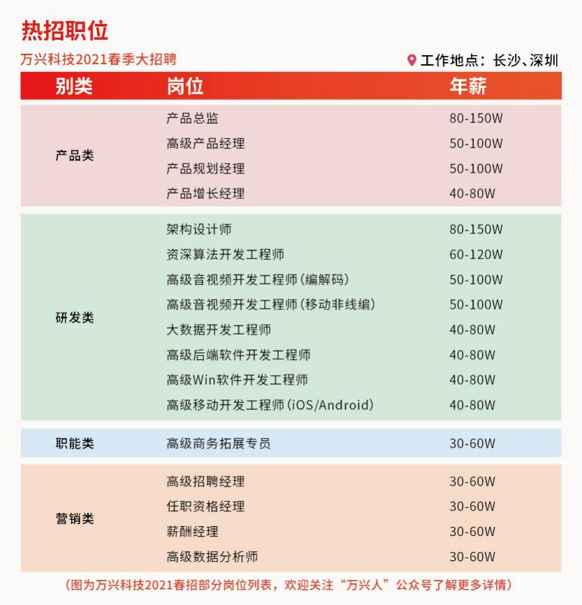 根據招聘信息顯示,萬興科技此次聚焦“引才入湘”,向全球精英拋出橄欖枝。此外,還大力推行“拿深圳同等高薪,住長沙宜居房子,干全球軟件事業”的人才引進策略,旨在以一線城市的薪資,匹配一線大廠的薪酬福利,吸引高端人才到長沙安家置業。