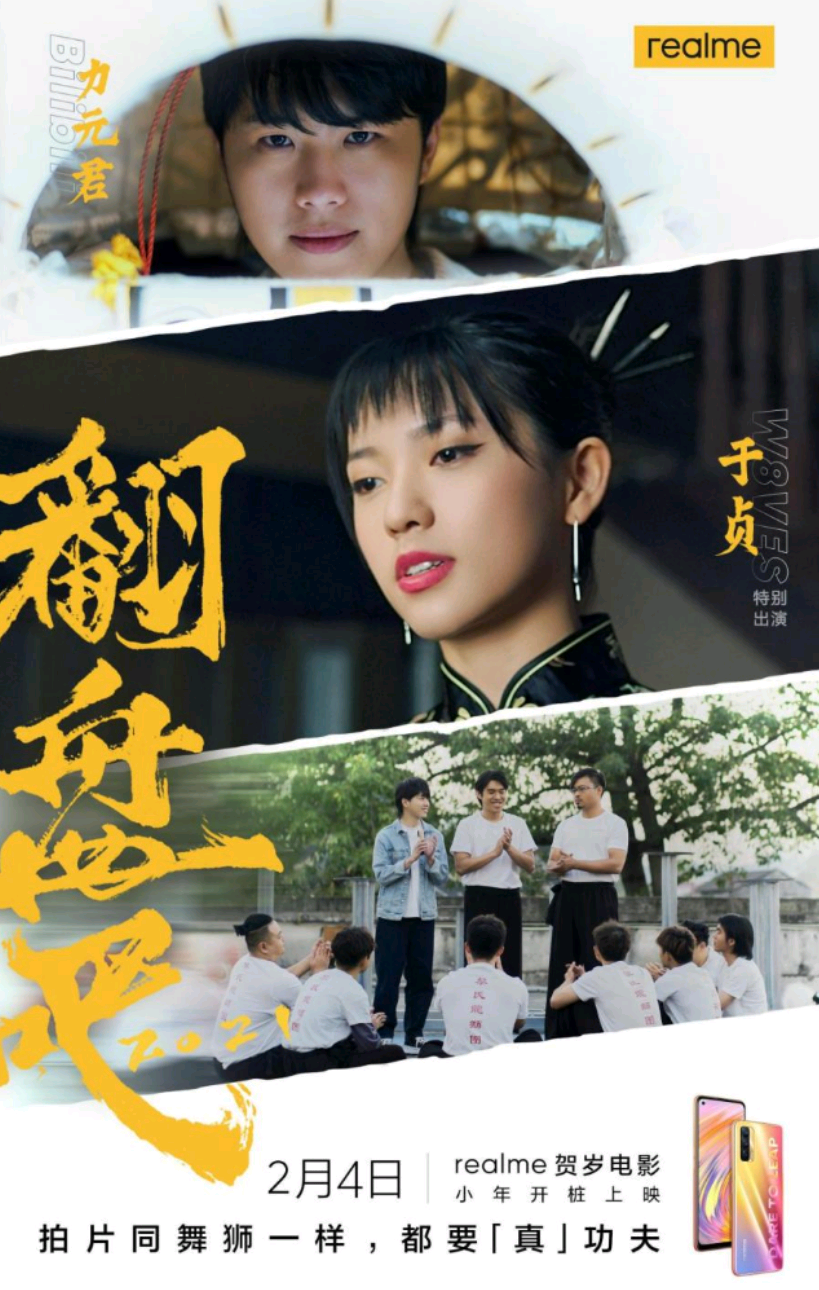 賀歲微電影《翻盤吧2021》以中國傳統民間藝術舞獅為背景,講述了廣東醒獅武館新一代傳承人阿正通過不懈的努力,聯合師兄弟一起振興武館,并在B站UP主力元君的鼓勵下,用真我V15國潮錦鯉手機拍攝醒獅視頻,體現年輕一代敢于突破傳統,重振武館,推廣及傳承傳統文化。此外,個性鮮明的說唱新星于貞也參與演出,共同演繹“越努力越幸運”的翻盤故事。