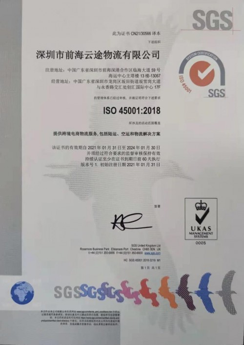 東方網2021年3月11日訊 繼2020年初獲得ISO9001質量管理體系認證后,近日云途物流順利通過專家組評審,再次獲得由國際公認的檢驗、鑒定、測試和認證機構SGS頒發的ISO14001環境管理體系、ISO45001職業健康與安全管理體系認證。