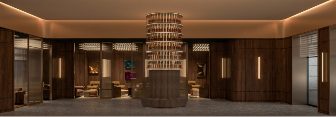 值得期待的是,此次合作中,桔子水晶酒店以最新版本亮相華南,不僅配備有一向受顧客青睞的華掌柜自助入住系統及其它智能無接觸服務,讓住客輕松實現“30秒入住0秒退房”,擁有安心高效住宿體驗,更打造了全新威士忌酒廊、城市會客廳等特色體驗,優雅的品味與精致的審美疊加靈活性、私密性和高效性,全方位滿足新時代住客的審美訴求,兼顧現代商旅及休閑需求,為賓客打造超出預期的綜合體驗感。