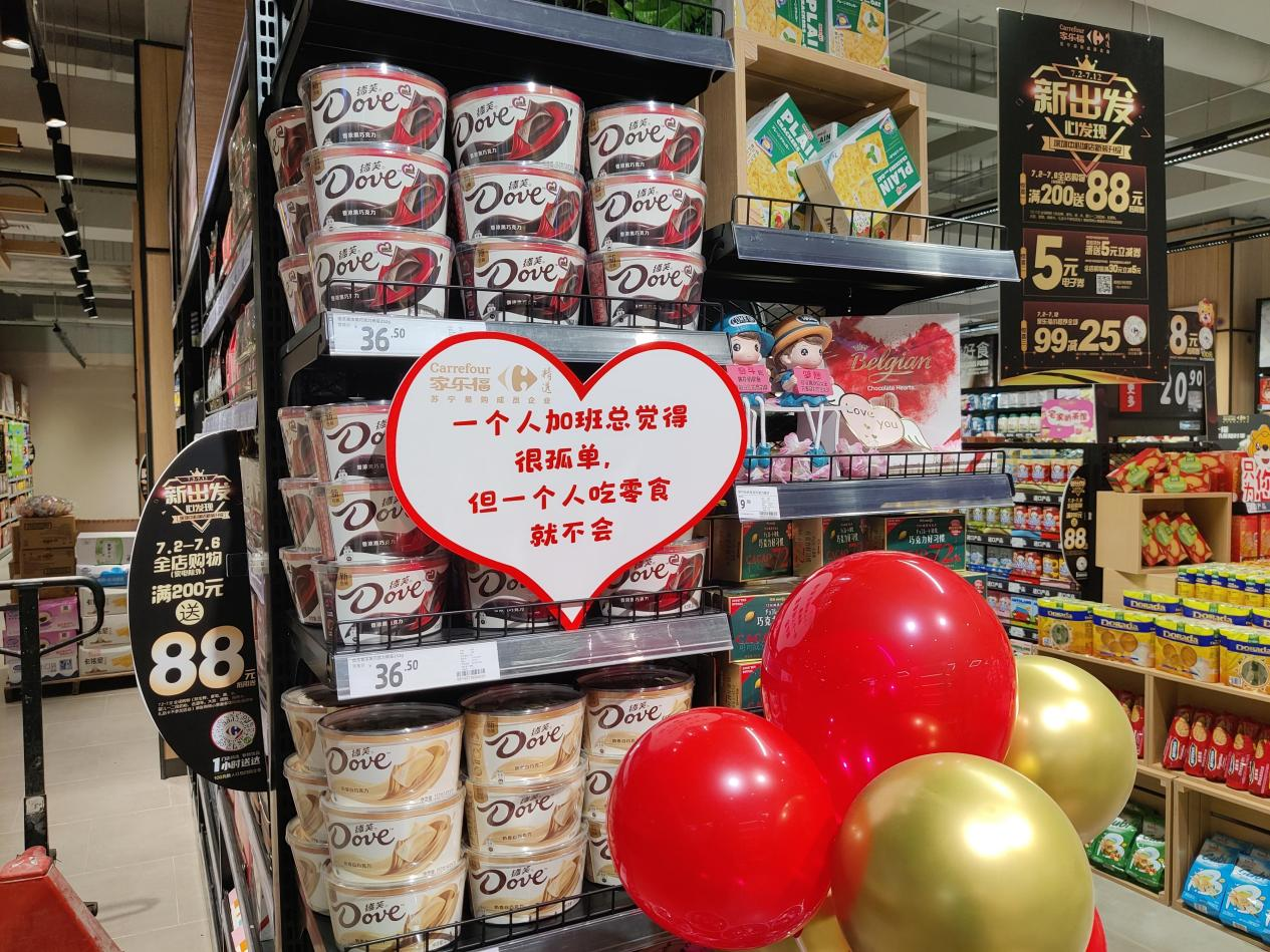 借著盛大開業的東風,家樂福社區品質中心店推出了“優品物語”的趣味逛店活動。該活動,在原本干巴巴的價格指示牌下面增加了諸如,“一個人吃飯很孤單,但一個人吃零食就不會”“隔壁的,你和卷心菜是什么關系?我是反內卷菜系”“櫻桃:要我一口能讓你大紅”“藍莓:我還爆漿!能讓你大紫”等“Z世代”語言,吸引大家來發掘逛超市的趣味。不但年輕的小情侶可以在下班后默契地相視一笑,也吸引到小紅書的博主們競相探店打卡。既賦予了購物一點有趣和人性化,也給這屆年輕人動輒發圈、種草的社交型消費加點料。