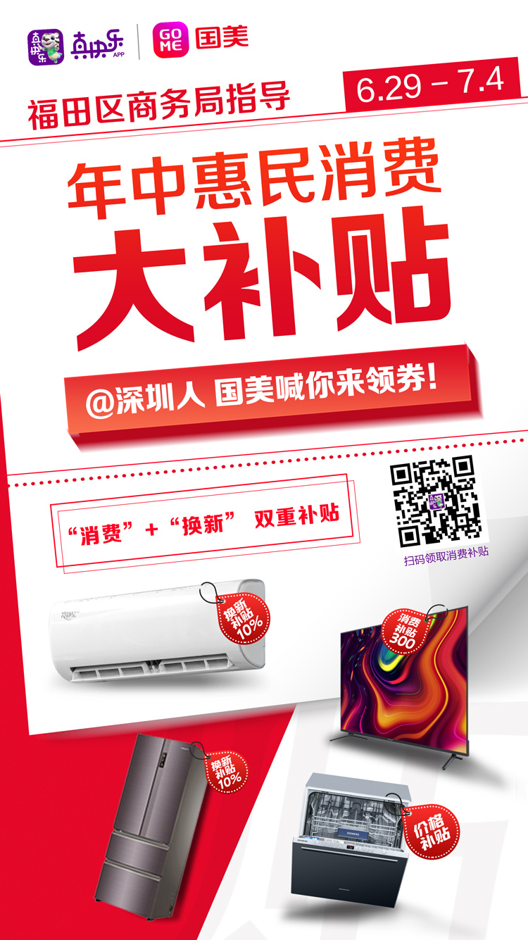 據(jù)悉,為獻(xiàn)禮建黨100周年,在深圳市福田區(qū)商務(wù)局的指導(dǎo)下,深圳國(guó)美和“真快樂(lè)”APP誠(chéng)意滿滿的推出了“年中惠民消費(fèi)大補(bǔ)貼”活動(dòng),國(guó)美這次“年中消費(fèi)大補(bǔ)貼”將從6月21日起一直延續(xù)到7月4日,4500萬(wàn)補(bǔ)貼發(fā)放,助力深圳地區(qū)消費(fèi)者升級(jí)品質(zhì)生活。而且所有活動(dòng)商品原有低價(jià)基礎(chǔ)上進(jìn)行補(bǔ)貼直降,還有超多驚喜好價(jià)等你來(lái)?yè)專瞬ㄑ蛎^對(duì)放心薅,一起來(lái)看看吧!