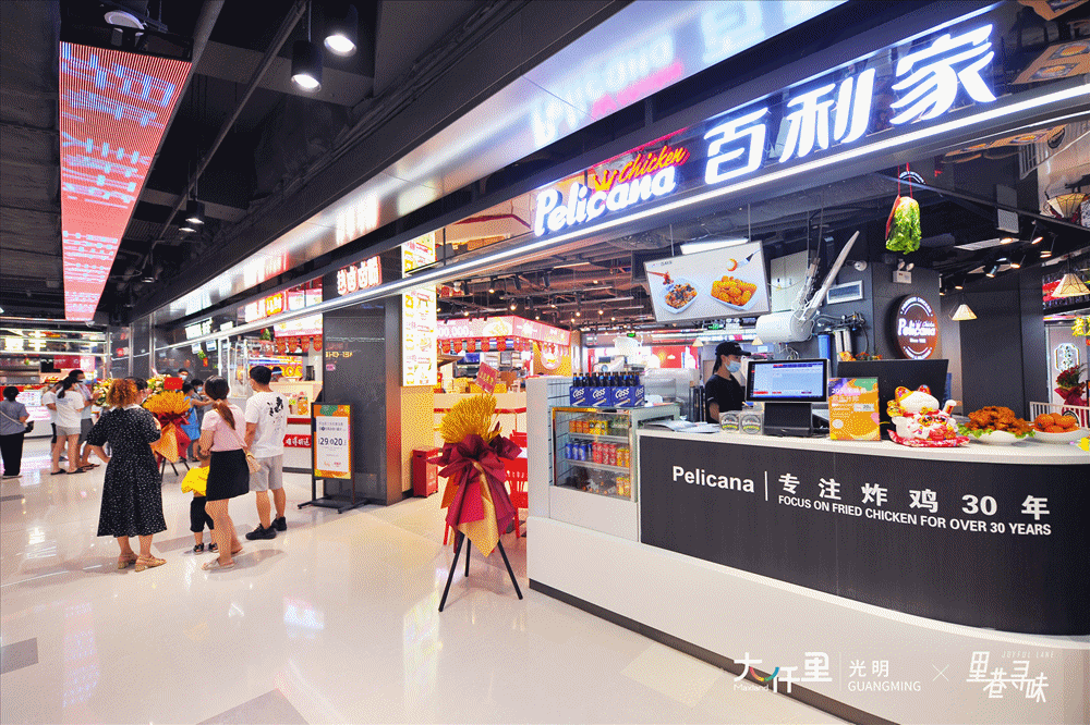 據了解,里巷尋味美食主題街區引進了30余家知名美食品牌,其中90 %首進光明,包括人氣品牌:鮑師傅、小楊生煎、廖記棒棒雞等,以及深圳本地知名品牌:有茶、抹趣、喜姐炸串等,可謂光明區“首店收割機”。街區通過整體木色調與材質特性的結合,讓人們享受美食的同時體驗輕松舒適的氛圍。輕餐品牌的豐富,帶來全新的購物體驗升級,隨著里巷尋味的開街,區域美食的消費能力將得到進一步的挖掘與釋放。