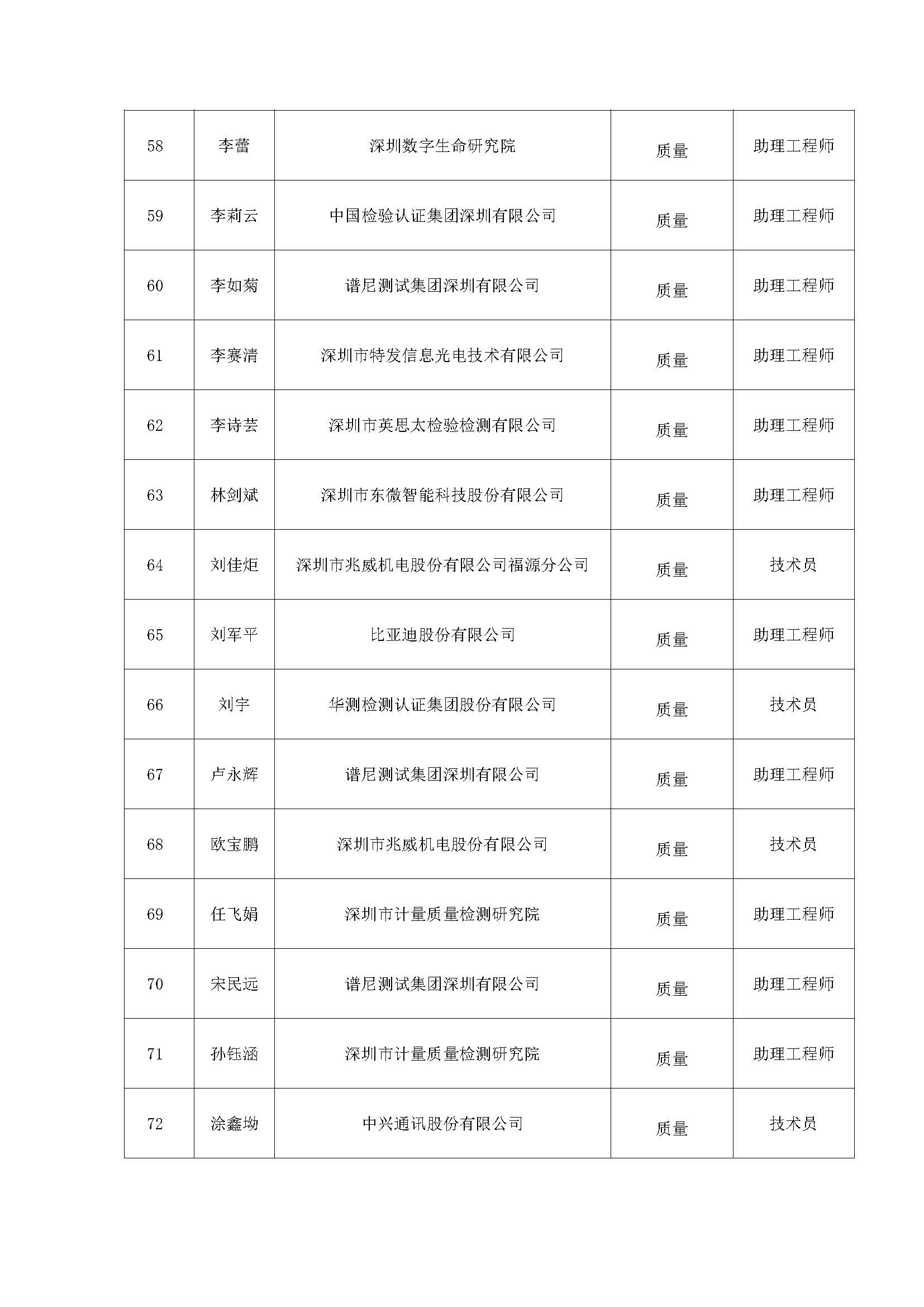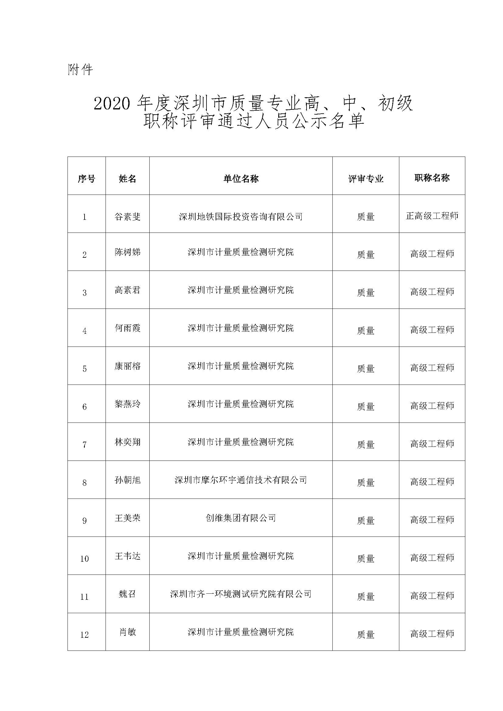 附件:2020年度深圳市質量專業高、中、初級職稱評審通過人員公示名單