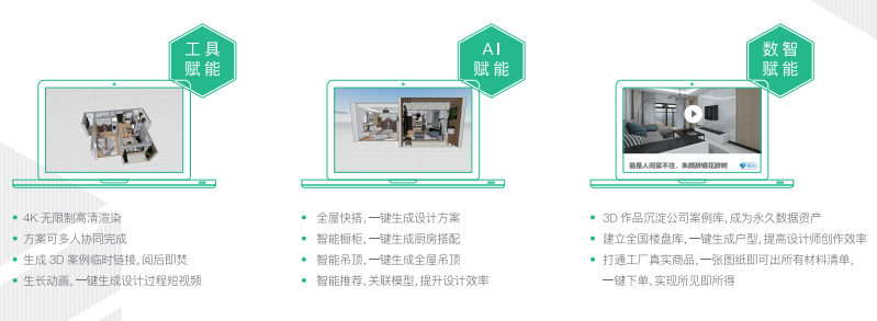 針對這一痛點,圖滿意滲透了用戶從靈感搜集、量房簽約到施工選材的全流程,為裝企提供從獲客到簽單的全鏈路賦能。同時,圖滿意正在打造集樓盤庫、案例庫、方案庫與商品庫于一體的智能設(shè)計系統(tǒng),搭建圖滿意場景化銷售平臺以及運營體系,助力裝企實現(xiàn)一站式銷售。