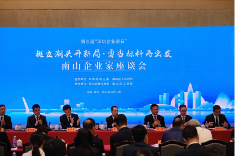 今天是第三屆“深圳企業家日”,就在此前一天,南山區召開了一場以“挺立潮頭開新局勇當標桿再出發”為主題的南山企業家座談會,政府部門、企業家代表共聚一堂,共同探討未來發展大勢,為南山區發展建言獻策。