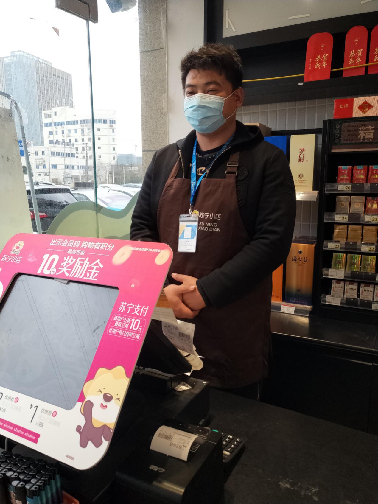 汪林林通過各種渠道,自掏腰包購買了兩批近4000個(gè)口罩,在他擔(dān)任店長(zhǎng)的蘇寧小店鎮(zhèn)江凱旋國際店免費(fèi)發(fā)放,解了不少周邊居民的燃眉之急。