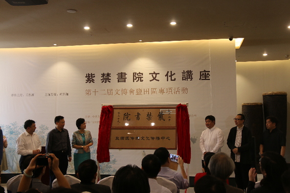 活動現場,來自兩岸三地的著名學者們匯聚一堂,共同見證鹽田紫禁書院的成立。故宮博物院院長單霽翔、常務副院長王亞民,深圳市委宣傳部副巡視員陳慶瀾以及鹽田區委書記杜玲、區長吳德林共同為鹽田紫禁書院揭幕。