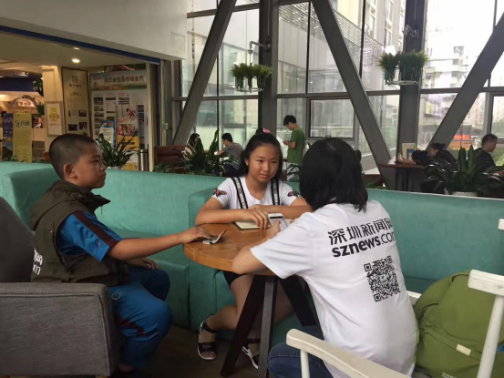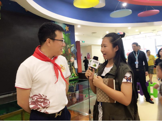 6月1日,在智慧親子陪伴組委會主辦的“六一聯歡會”上,來自書香小學的黃思怡和陽光小學的張家宇兩名深網小記者對七巧國教育科技有限公司常務副總經理 王耀強、深圳獅子會會長 施建永進行了專訪。(曹園芳)