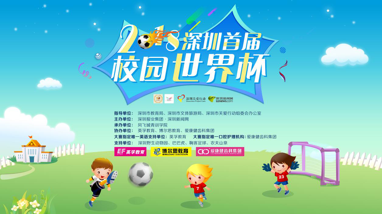為貫徹“普及+提高”的校園足球方針,普及、傳播深圳校園足球,推動校園足球工作健康發(fā)展。由深圳市教育局、深圳市文體旅游局、深圳市關(guān)愛行動組委會辦公室指導,深圳新聞網(wǎng)主辦,風飛城青訓學院承辦的2018深圳首屆校園世界杯將于2018年7月10日-15日在深圳市仙桐體育公園足球場舉行。