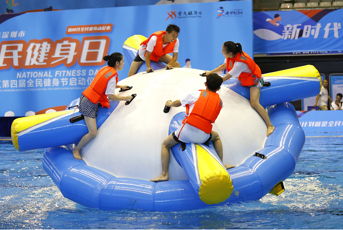 啟動儀式結(jié)束后,現(xiàn)場的泳池內(nèi)還開展了全民運(yùn)動薈板塊的水上趣味運(yùn)動會項目。