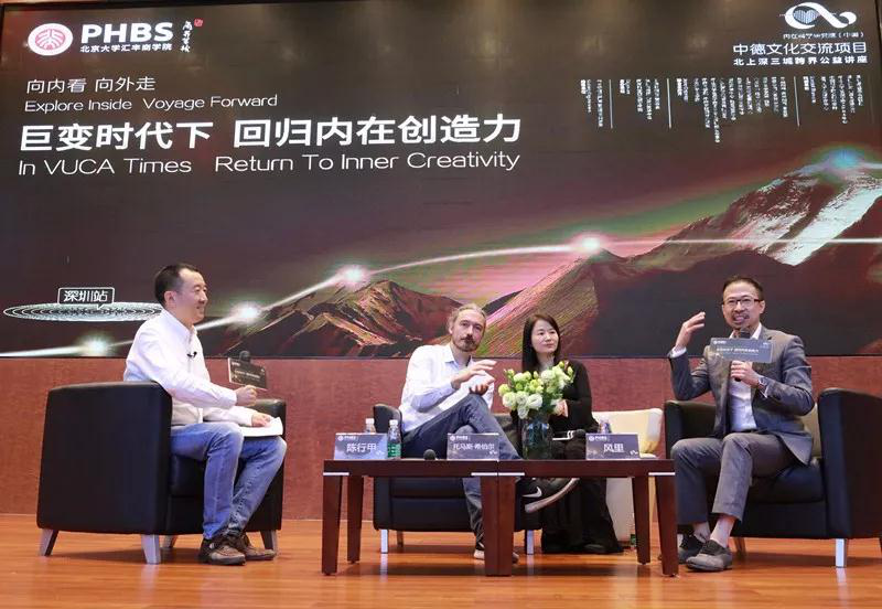 深圳作為此次北上深三城跨界公益講座的最后一站,北京大學校友風里博士與托馬斯?希伯爾共同探討巨變時代下,如何通過內在創新而站在時代的前沿,領航未來。