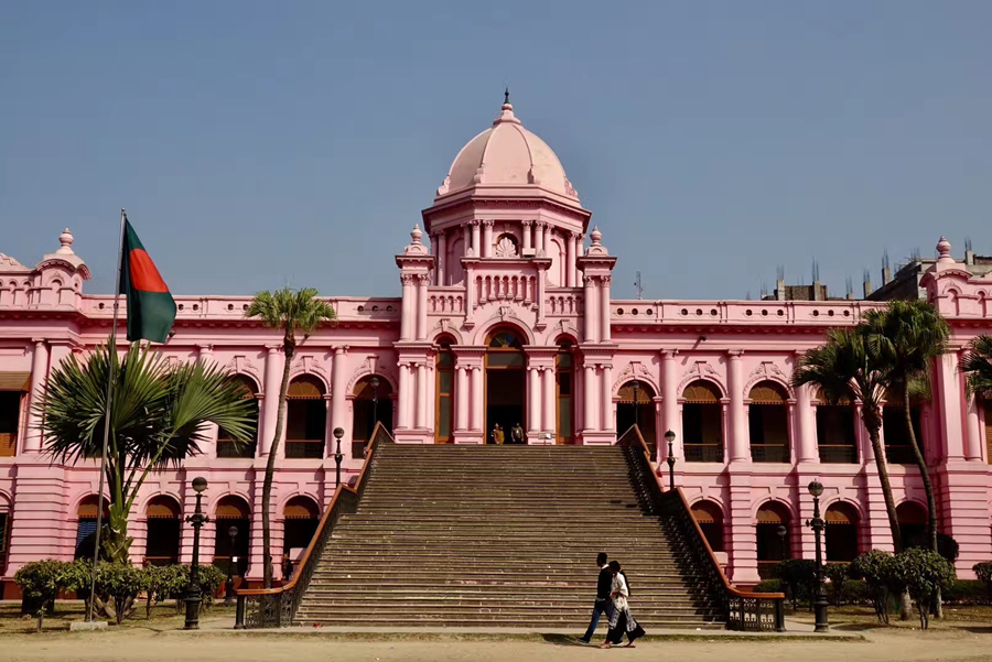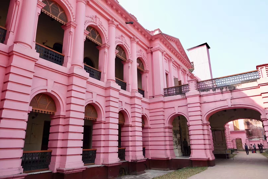 距孟加拉恒河渡口不遠的地方有一座粉紅色宮殿式的豪華建筑。那是1872年一位名叫阿赫桑曼濟勒的地主在法國人留下的倉房基礎上改建的私邸,后來曾在一次龍卷風襲擊時受創。李仁奇 攝