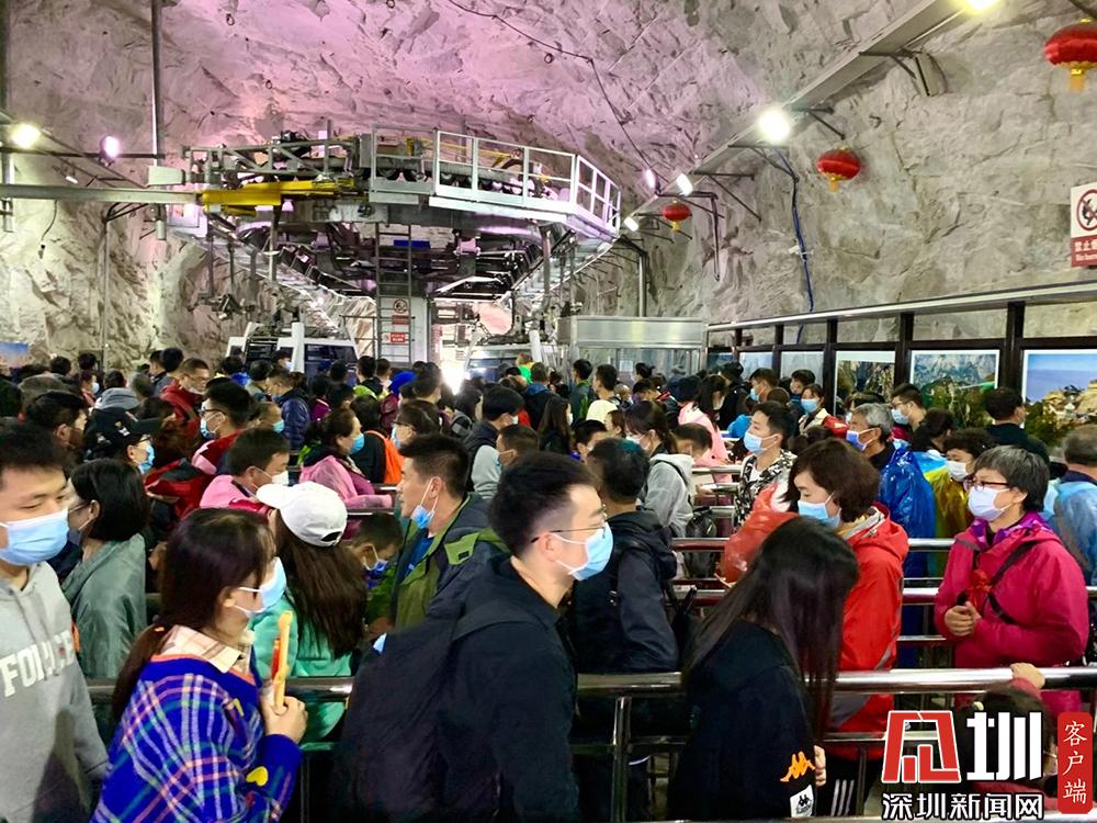 但感覺節日期間這條索道仍不敷應用,游客排隊等候竟長達3小時以上。華山索道一覽。李仁奇攝。