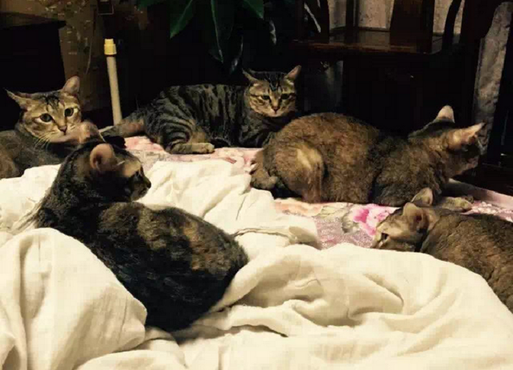 家里養了16只貓2只狗,另外喂養了幾十只流浪貓,并給身體條件合適的貓咪絕育。