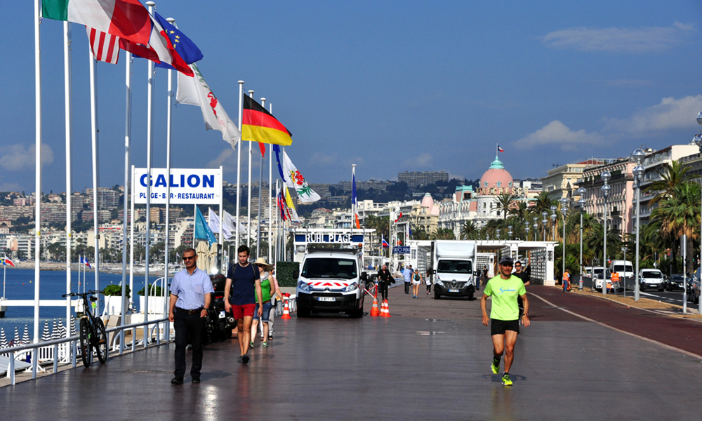 2016年7月14日,這條大道上曾發生恐怖分子駕駛卡車撞人的事件,造成上百人死亡,全世界為之震驚。李仁奇 攝