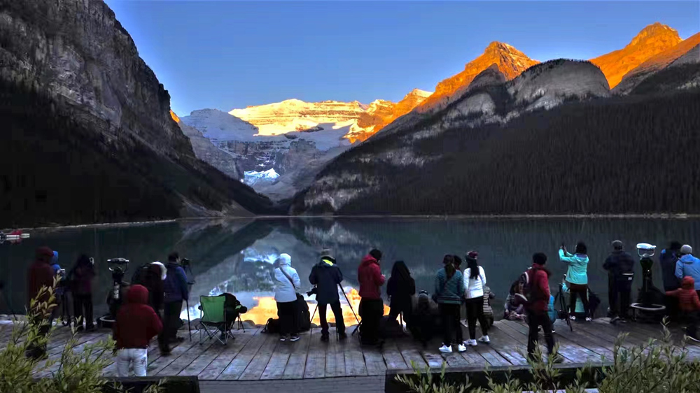湖水晶瑩剔透,在鋸齒狀的山谷的擁環下,就像一塊寶玉。這塊“國寶”被印在加拿大20元的紙幣上。李仁奇 攝