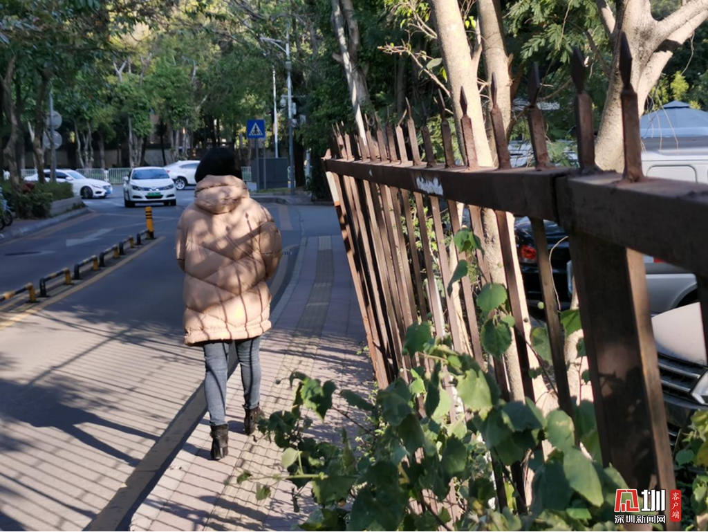 1月12日下午4時30分,正是小學放學時間。記者在竹香一路看到,過往接送孩子的家長絡繹不絕。由于竹香一路一側人行道通行距離不足一米,且靠近深南汽配城的鐵柵欄”張牙舞爪“,搖搖欲墜,向外傾斜擠壓了通行空間,不少家長讓孩子走在人行道上,自己則是走在車行道上,與身邊的汽車擦肩而過。