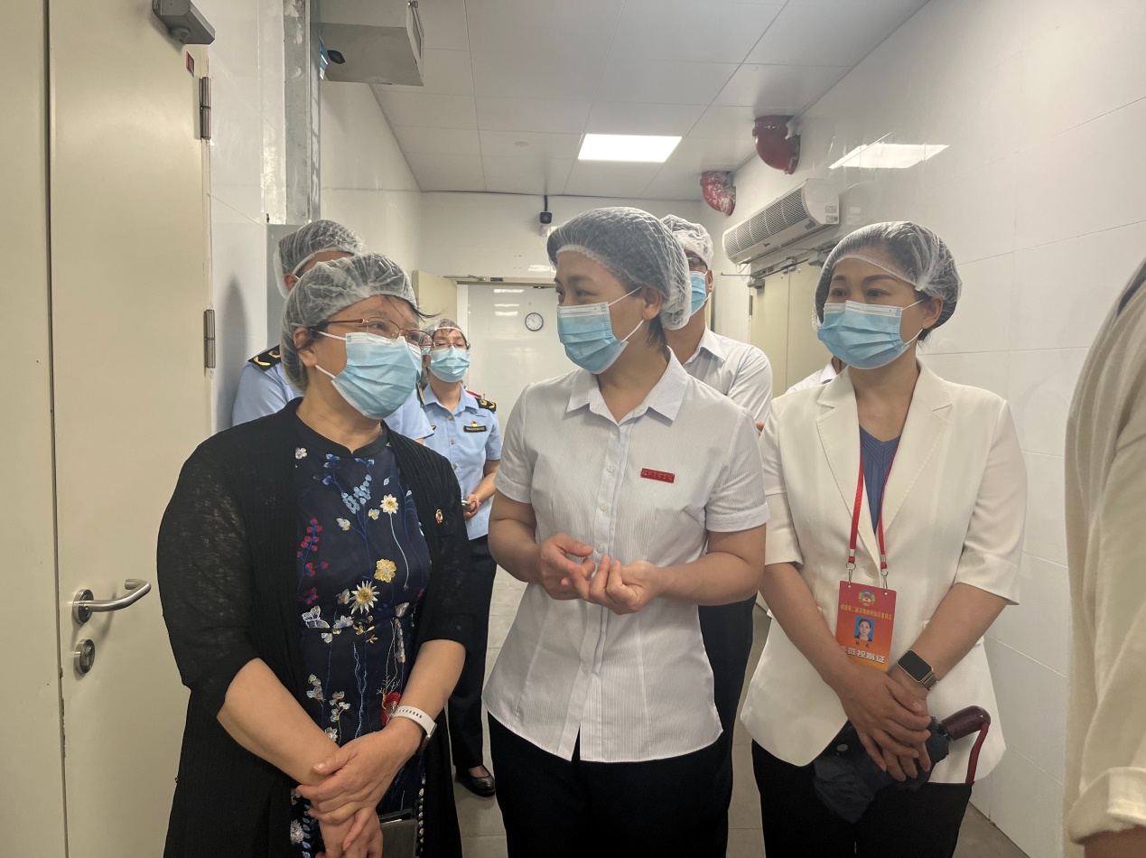 執法人員現場對學校后廚進行詳細檢查,分別從采購索證索票、進貨查驗、制作加工、備餐配送、場所和設施清潔維護、餐飲具清洗消毒、從業人員健康管理,制止餐飲浪費,食品安全總監配置履職情況,以及落實主體責任的“日管控周排查月調度”制度等方面進行詳細檢查。經檢查,整體情況良好,但存在部分細節問題,如水產品刀具分類可更細致、操作臺積水需清理、面點間的食材存放需避免陽光直射等,針對檢查過程中發現的問題,執法人員現場責令學校限期整改到位。同時,快檢工作人員對餐廳使用的食材進行了抽檢,結果均為陰性。
