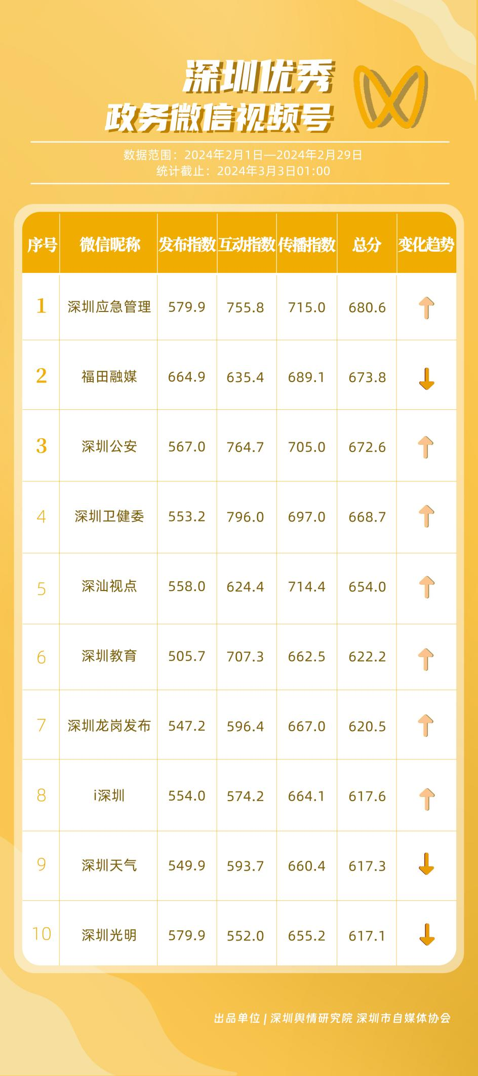 記者關注到,2月深圳優秀政務新媒體矩陣共10個,展現出多單位在鍛造政務新媒體優質矩陣方面取得的良好成效,助力深圳政務新媒體矩陣健康有序發展。