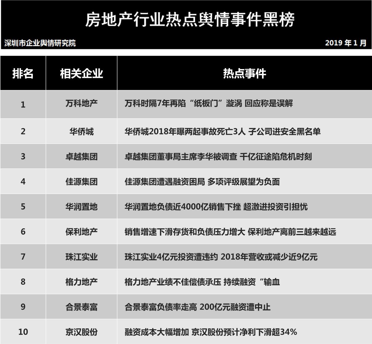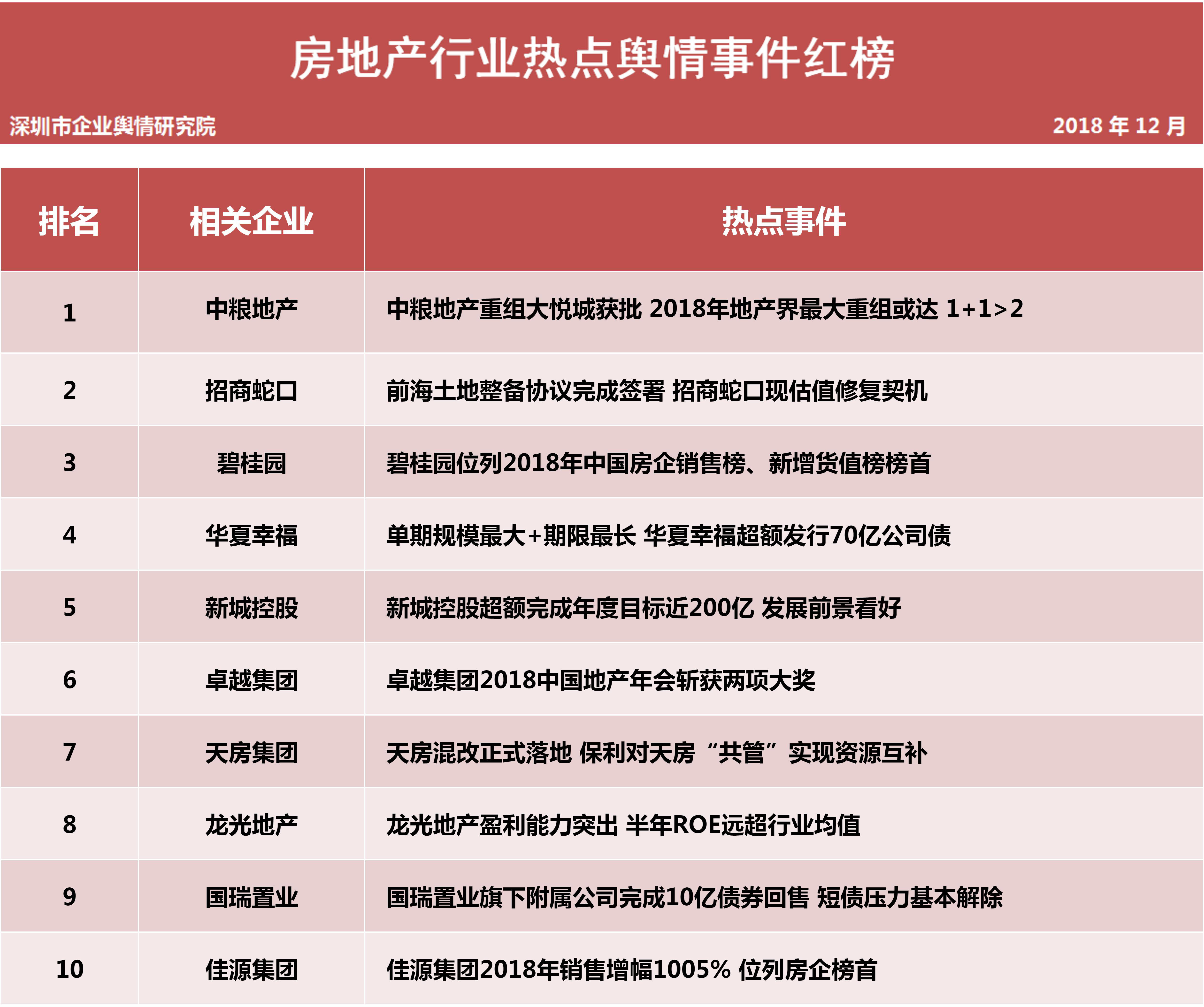1月31日,深圳企業輿情研究院發布第十二批企業輿情榜單。本次榜單重點聚焦房地產及醫藥保健兩個行業。